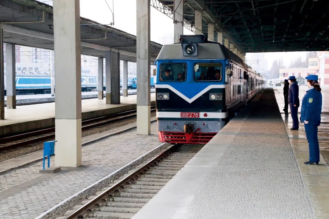 3月12日,丹东开往平壤的国际旅客列车抵达平壤站。图/新华